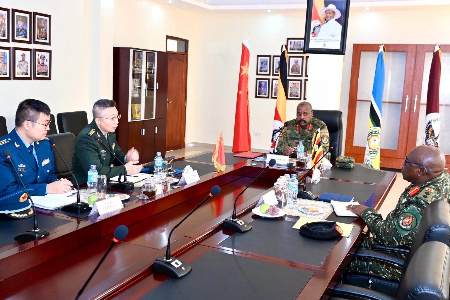 The Chief of Defence Forces (CDF), General Muhoozi Kainerugaba, this morning received the Chinese Defence Attaché to Uganda, Colonel Zhang Hao, and his deputy, Colonel Li Hai, at the Special Forces Command Headquarters in Entebbe.